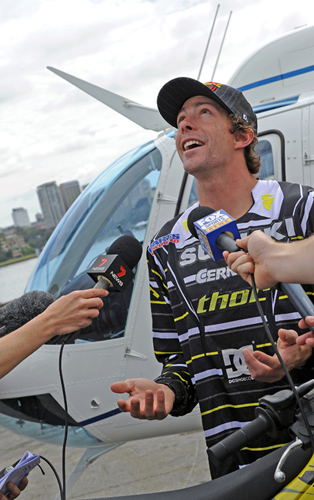 图:美国男子驾摩托车飞越盘旋直升机(2)