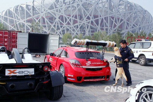 “2009世界车王争霸赛”通关现场,20辆形态各异的赛车近日在北京鸟巢前依次排开。据悉,今年的比赛将于11月2日至4日上演,届时鸟巢将群星闪耀,迈克尔—舒马赫、巴顿、格伦霍姆等顶级车王都将悉数到场,争夺“王中王”的桂冠。