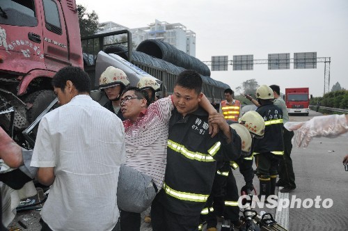 南宁消防支队特勤大队官兵迅速赶至现场救援,至7时许,最后一名被困伤员成功救出。中新社发 孙林 摄