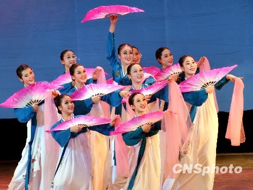 图为朝鲜平壤艺术团在南宁剧场给南宁观众献上了一台大型歌舞“盛开的金达莱”。中新社发 骆文刚 摄
