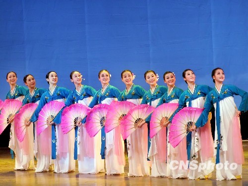 图为朝鲜平壤艺术团在南宁剧场给南宁观众献上了一台大型歌舞“盛开的金达莱”。中新社发 骆文刚 摄
