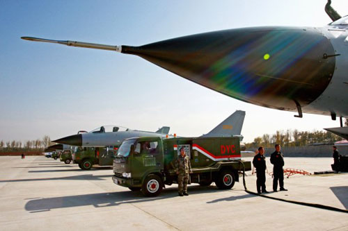 10月31日,机务工作人员在对歼-10飞机进行通电,为训练做好准备工作。