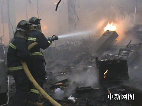 图为消防官兵正在扑救大火。