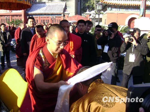 中国藏语系高级佛学院11月2日下午在北京西黄寺举行第5届藏传佛教高级学衔授予仪式。第十一世班禅额尔德尼·确吉杰布上午在此接受了高级学衔获得者的朝拜。