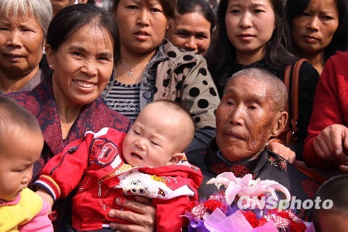 图:110岁老人喜过寿辰 子孙240余人贺寿(2)