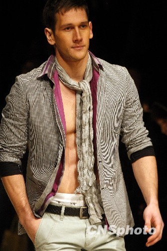 图为模特展示最新男装作品。 中新社发 钱兴强 摄