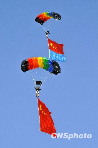 图为空军八一跳伞队的表演。中新社发 潘旭临 摄