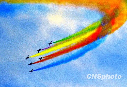 中国空军举行纪念建军六十周年飞行、跳伞预演(4)