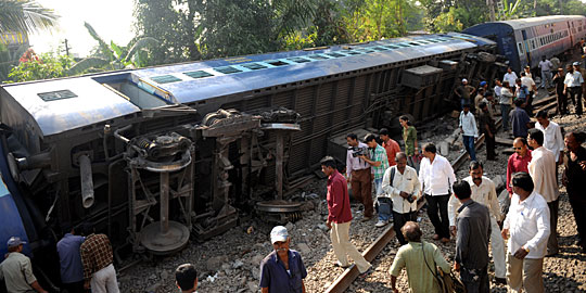 图:印度列车出轨 造成多人受伤