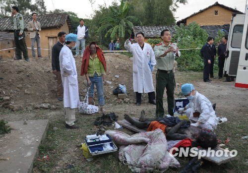 十一月四日下午五时许,广西玉林市福绵区一制作爆竹引线的作坊突然发生剧烈爆炸,导致多间房屋全部倒塌,并造成一人死亡,三人受伤。中新社发 张希友 摄
