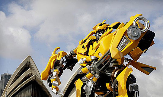 变形金刚“大黄蜂”在澳大利亚悉尼歌剧院前“现身”。