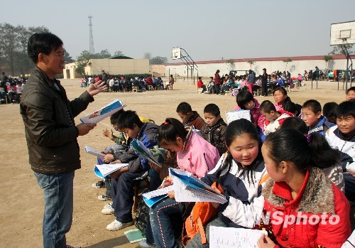 陕西高陵学生们露天上课避震。中新社发 梁萌 摄
