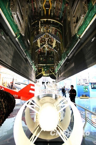 空军武器装备成就展:飞机装填氢弹的模拟演示