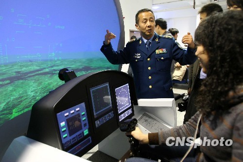 空军特级飞行员模拟器前讲解飞行技巧——中新网