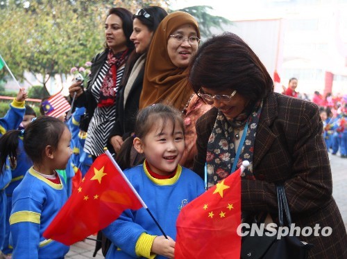 图:各国空军代表团随行夫人参观蓝天幼儿园(2)