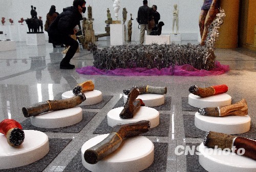 图为第二届“曾竹韶雕塑艺术奖学金”展作品。中新社发 钱兴强 摄