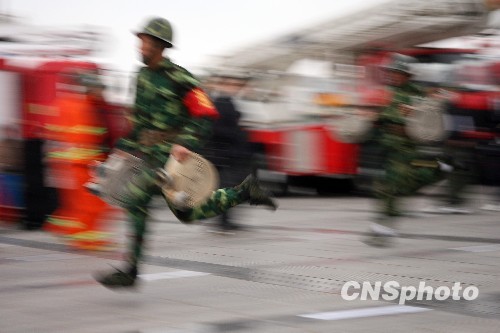 11月9日是“消防宣传日”,河南开封各区、县办事处的消防人员进行了一系列的消防技能比赛。快速穿消防服装、水龙带连接接力、灭火器持重接力等项目吸引大批民众前来参观,消防员化身运动员现场竞技。中新社发 王中举 摄