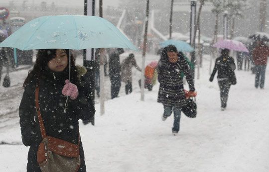 11月10日,中国北方普降大雪。 图为河北石家庄大雪纷飞。
