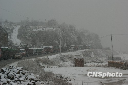 山西吕梁突降暴雪滞留两千余车辆。中新社发 高增平 摄