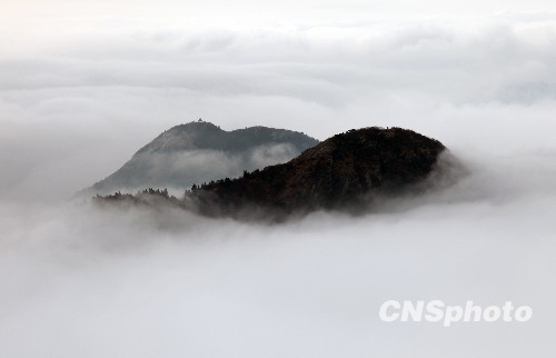 11月10日,湖南衡阳市境内的南岳衡山出现如梦似幻的云海奇观,仿若人间仙境。中新社发 刘爱成 摄