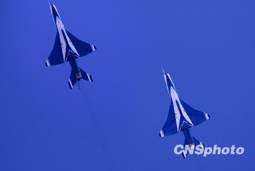 11月11日,中国人民解放军空军成立60周年纪念日。北京京郊某机场,大雪过后,首场飞行表演训练课目场景。
