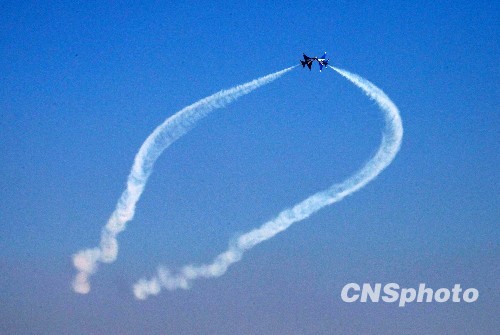 11月11日,中国人民解放军空军成立60周年纪念日。北京京郊某机场,大雪过后,首场飞行表演训练课目场景。