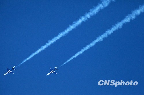 中国空军成立60周年纪念日进行首场飞行表演训练。中新社发 卢炳广 摄