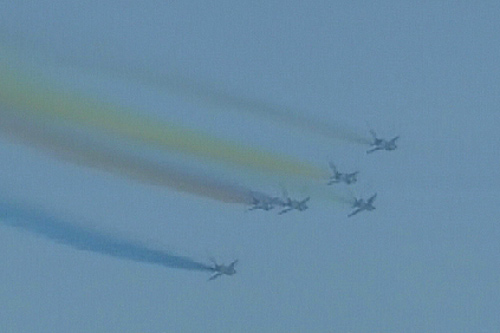 15日上午,人民空军成立60周年飞行表演在沙河机场举行。