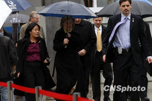 组图:希拉里雨中考察上海世博会美国馆(3)