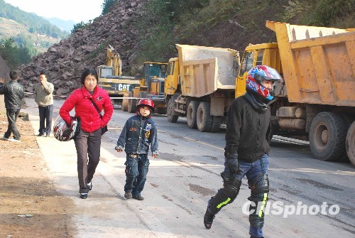 交通暂时中断。中新社发 谈天 摄