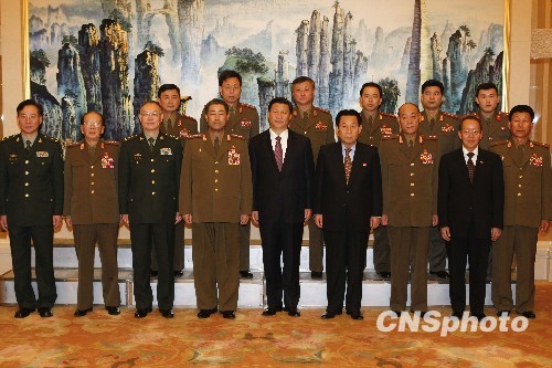 中国国家副主席习近平会见朝鲜国防委员会委员、人民军总政治局第一副局长金正阁大将一行。中新社发 盛佳鹏 摄