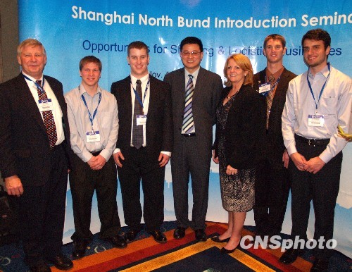 11月16日,“上海北外滩投资论坛”在美国洛杉矶举行。此次论坛吸引了美国航运与物流业同行100多人参加,会上介绍了上海北外滩将建成具有全球航运资源配置能力的国际航运中心。图为上海北外滩航运服务集聚区建设发展办公室主任陆清冬(中)与美国朋友在论坛上。