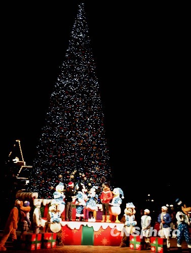 在巨型圣诞灯树前举行的“闪耀冬日”亮灯仪式充满着童话般色彩。中新社发 张勤 摄