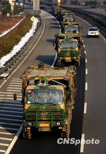 11月19日晨,济南军区铁军官兵万人千车兵分三路,向河南确山某合同战术训练基地实施远程机动。这标志着代号“铁拳-2009·确山”实兵检验性演习进入信息化条件下的远程机动阶段。“铁拳-2009·确山”演习18日拉开帷幕,参演主角是济南军区某红军师。