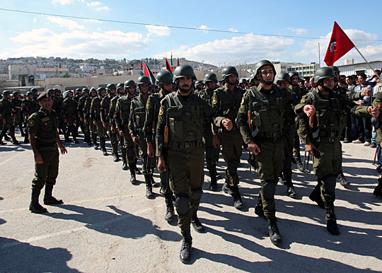 图为巴勒斯坦安全部队正在接受检阅。