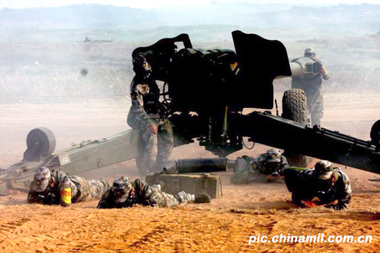 组图:炮兵师举行核化生整体防护演练(2)