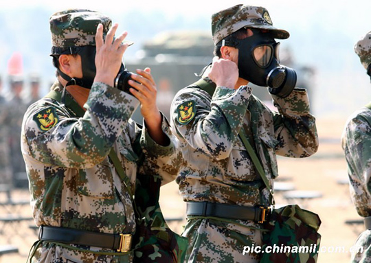 组图:炮兵师举行核化生整体防护演练(3)