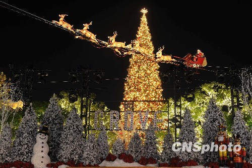 图:“全美最高圣诞树”在洛杉矶亮灯(2)