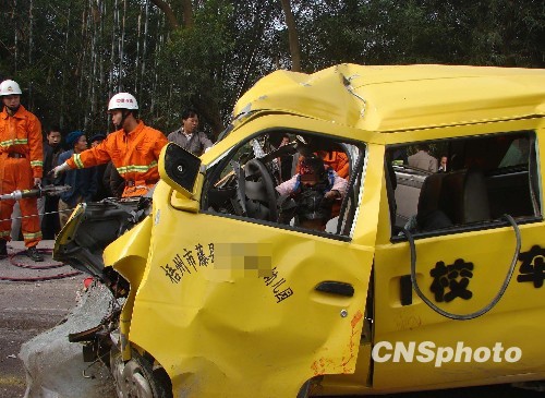 图:广西梧州幼儿园校车撞上大货车五人死亡(2)