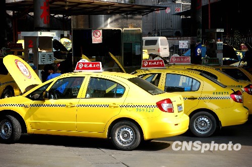 重庆市红石路加气站,出租车正在加气。中新社发 许康平 摄