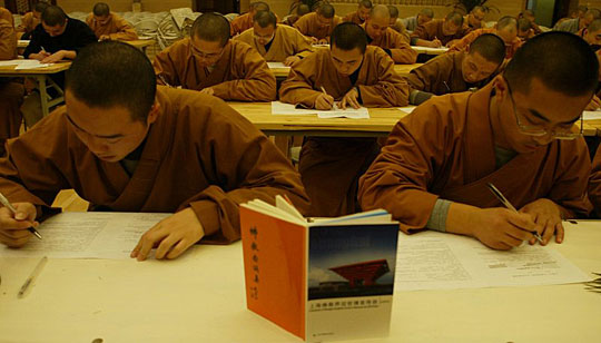 11月25日下午,常住玉佛寺的100多名法师穿着整洁的僧袍,端坐在觉群楼多功能厅,参加在此举办的玉佛寺第八届“觉群文化周”的“百僧迎世博”知识竞赛。