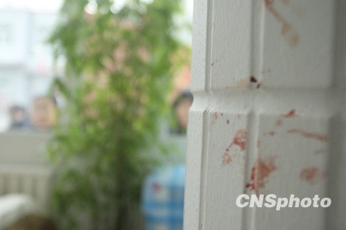 图为事发现场血迹斑斑。中新社发 靖阳 摄