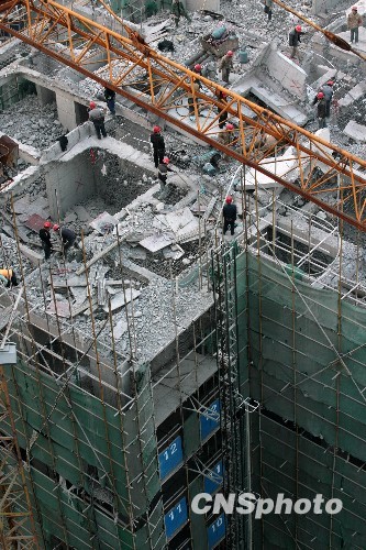 图:武汉20层违建大楼成功拆除8层(4)