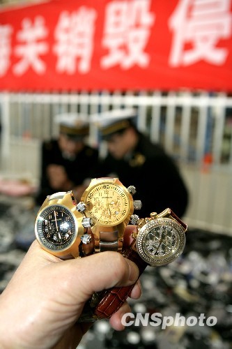 12月2日,北京海关销毁了约2万件侵权手表、手机及播放器,货值约1000万元人民币,共涉及诺基亚、索尼等10余个世界知名品牌。