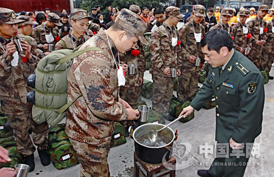 重庆市丰都县人武部在今冬征兵过程中,处处体现以人为本,为了预防甲型H1N1流感,他们为新兵购买了口罩、体温计、常用药、并捡来中药熬成汤分发给每一个新兵,受到新兵和送行家长们的称赞。