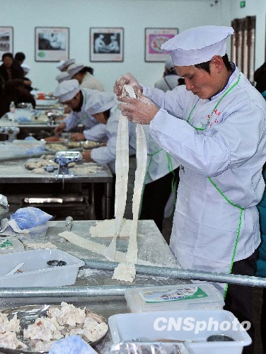 12月8日,参加中国“小吃王国”沙县小吃技艺大比拼的选手正在进行沙县特色小吃“扁食”的比赛。“扁食”不同于北方水饺,不同于云吞,皮薄肉多,口感有嚼劲,当地人说“有中国人的地方就有扁食”。当日,2009中国(沙县)小吃旅游文化节在福建沙县举办。中新社发 张丽君 摄