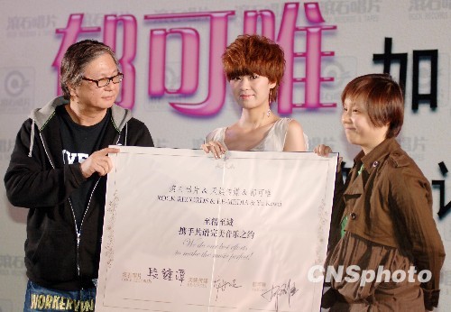 图为郁可唯与滚石高层签约加盟。中新社发 李学仕 摄