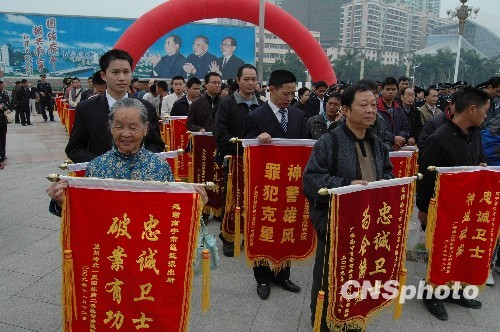 十二月十日,广西南宁举行该市史上规模最大的退赃大会,警方在该市民族广场将从十一月以来追缴回来的四十七辆汽车、七十四辆摩托车、十六辆电单车、七头耕牛以及一批电脑、手机、金银首饰、现金等一大批赃物返还给民众。据统计,今年十一月开始,南宁市公安局共破获各类案件两千六百五十九起,抓获各类违法犯罪嫌疑人一千五百四十六人。中新社发 王刚 摄