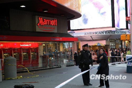 纽约一名便衣警察十日中午在游人如织的时代广场击毙一名男子。据报,这名男子当时正在向游人强卖CD。警察上前盘查时,这名男子向北逃走,在后来警察和男子的交火中,男子被警察击毙。据警方称,该男子持有的装填了子弹的手枪今年十月在弗吉尼亚首府里士满被报失窃。