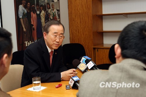在赴哥本哈根参加气候变化大会之前,联合国秘书长潘基文十日接受了中国媒体联合采访,潘基文充分肯定中国应对气候变化中所作的工作。中新社发 孙宇挺 摄